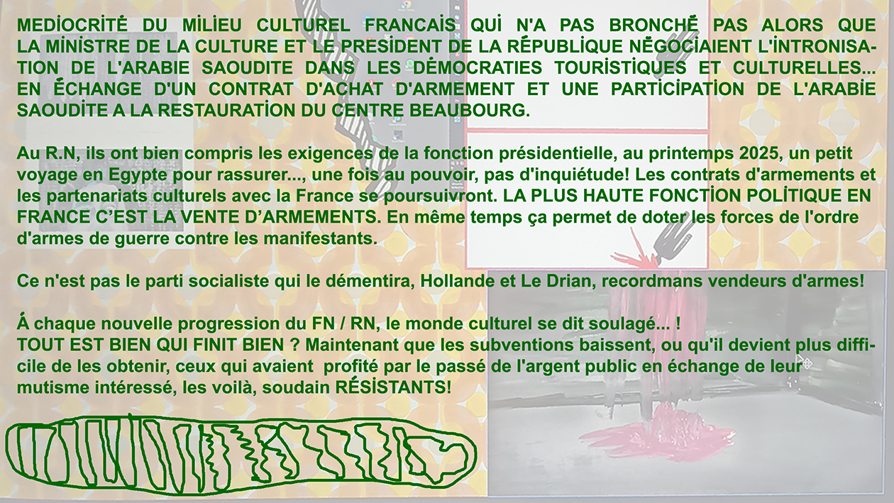 Assemblage de peintures, dessins, écrits, sur le rôle de la culture en France depuis le premier ministère des affaires culturelles en 1959, faits de 2010 à 2011,